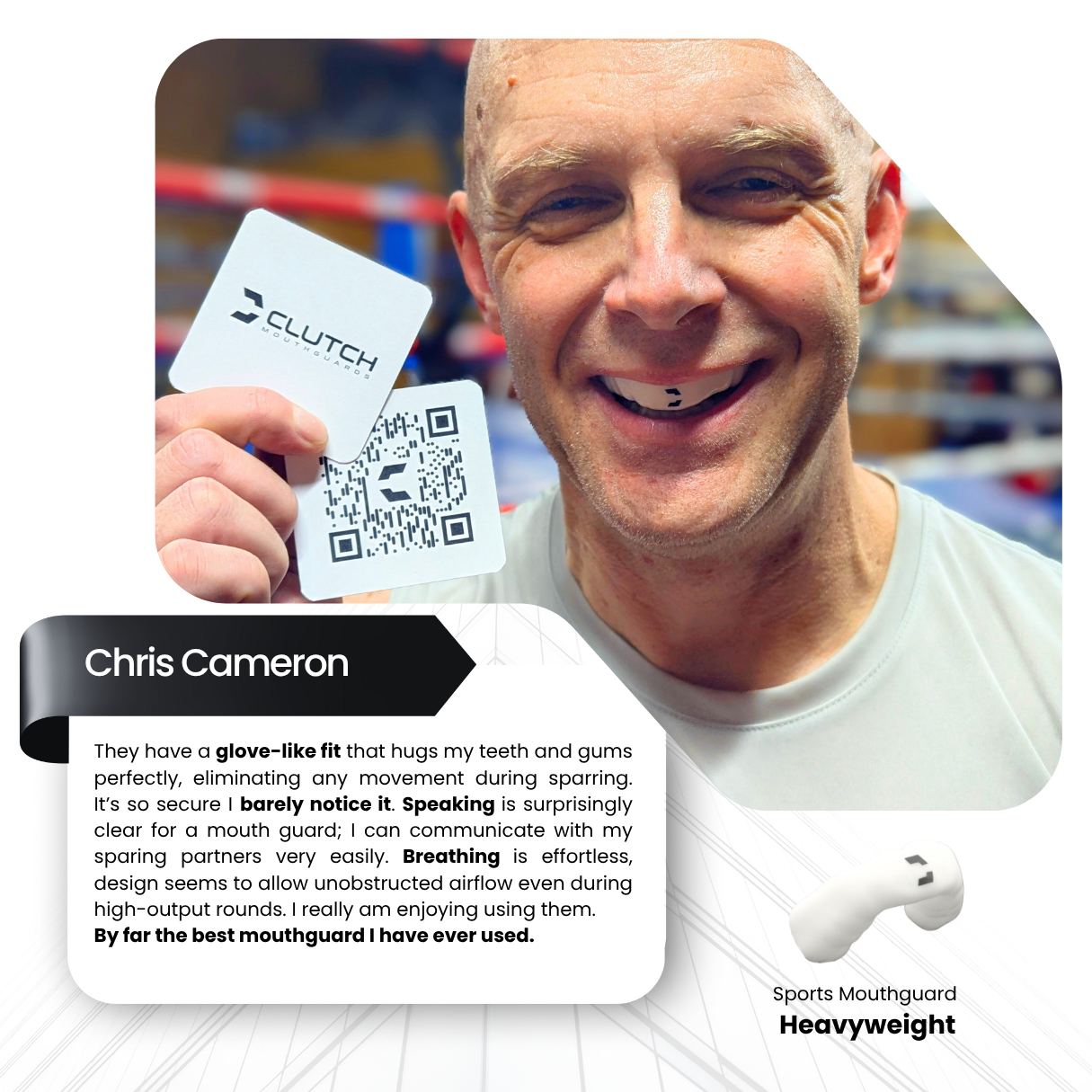 "I had a big fall and my boil-and-bite mouthguard fell out before the major impact. I'm stoked to have a custom Clutch mouthguard now. It feels so good."